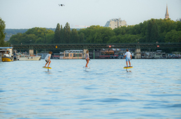 Imaginez : la Seine à vos pieds, un transat sous le soleil, un cocktail à la main… et juste après, une session d’eFoil ou de foil tracté pour vous envoler au-dessus de l’eau.