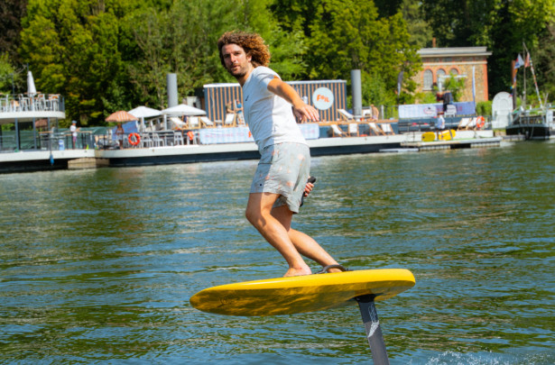 Imaginez : la Seine à vos pieds, un transat sous le soleil, un cocktail à la main… et juste après, une session d’eFoil ou de foil tracté pour vous envoler au-dessus de l’eau.